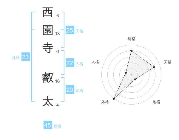 西園寺 叡太さんの地格は20画の1点!
