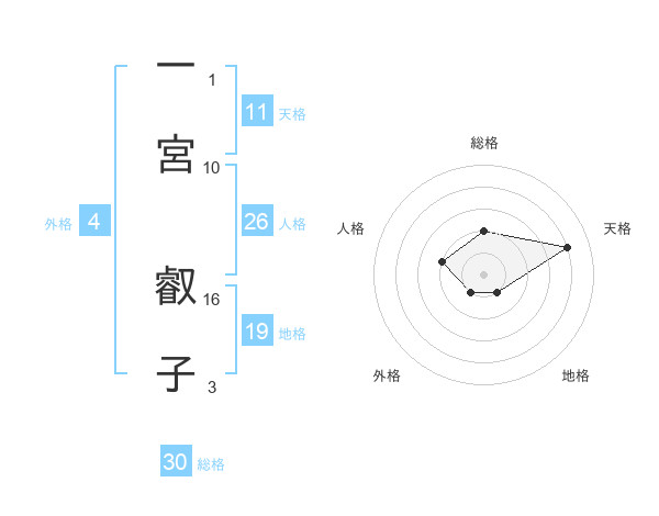 一宮 叡子さんの総格は30画の2点!