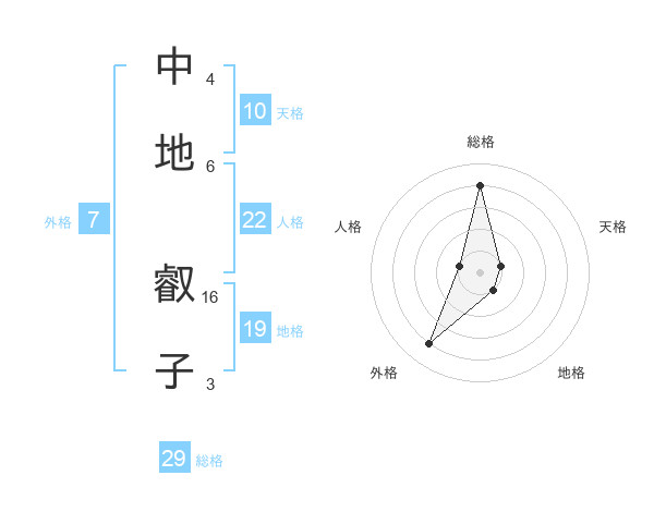 中地 叡子さんの総格は29画の4点!