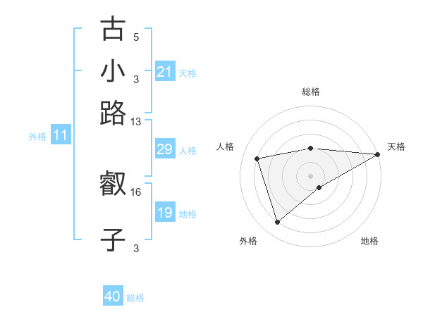 古小路 叡子さんの天格は21画の5点!