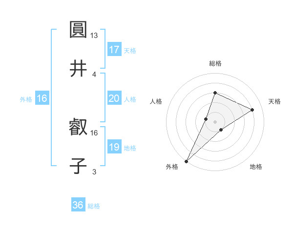 圓井 叡子さんを姓名の画数から五運を鑑定