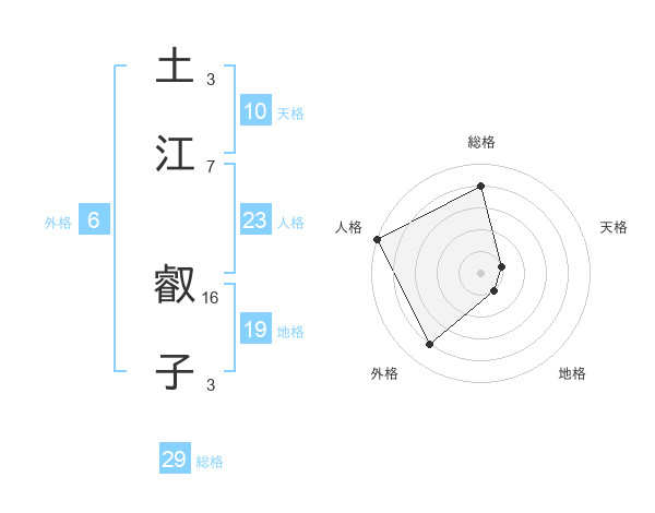 土江 叡子さんの総格は29画の4点!
