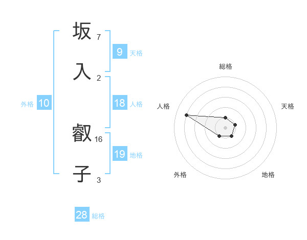 坂入 叡子さんの総格は28画の1点!