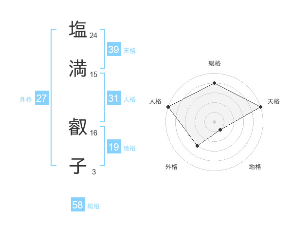塩満 叡子さんの天格は39画の5点!
