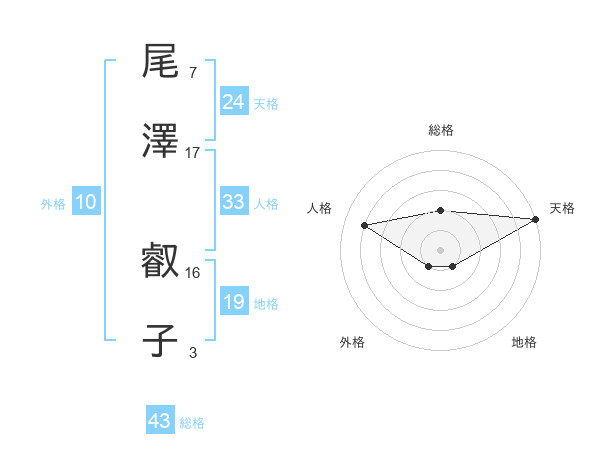尾澤 叡子さんを姓名の画数から五運を鑑定