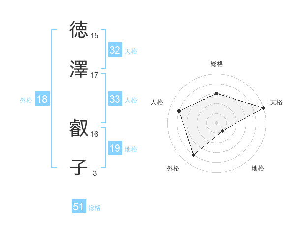 徳澤 叡子さんの総格は51画の3点!