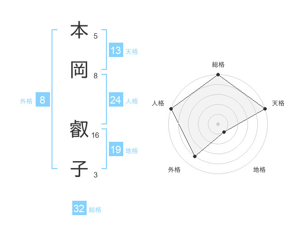 本岡 叡子さんの総格は32画の5点!