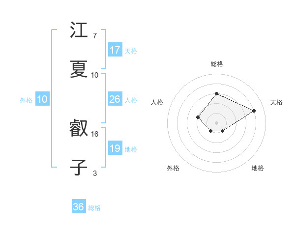 江夏 叡子さんを姓名の画数から五運を鑑定