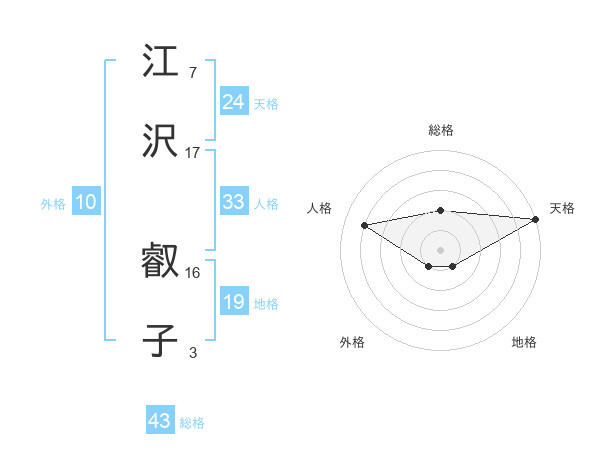 江沢 叡子さんを姓名の画数から五運を鑑定