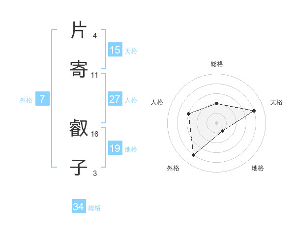 片寄 叡子さんの天格は15画の4点!
