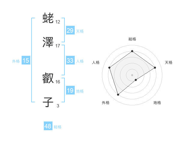 蛯澤 叡子さんの天格は29画の4点!