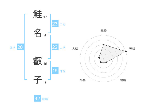 鮭名 叡子さんの天格は23画の5点!