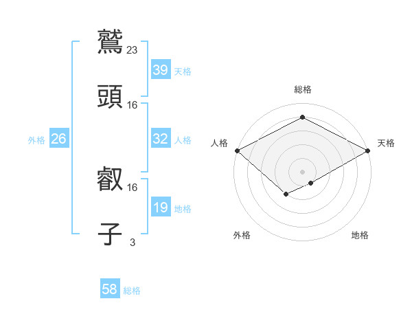 鷲頭 叡子さんを姓名の画数から五運を鑑定