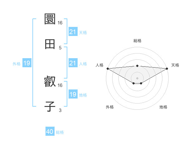 圜田 叡子さんを姓名の画数から五運を鑑定