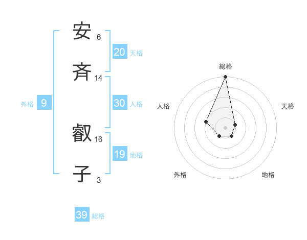 安斉 叡子さんを姓名の画数から五運を鑑定