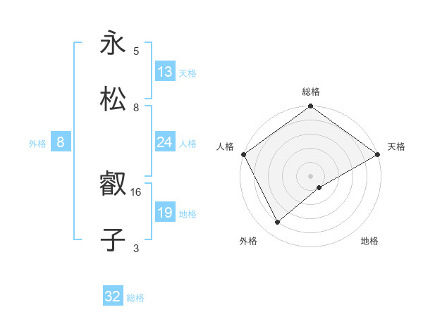 永松 叡子さんの総格は32画の5点!