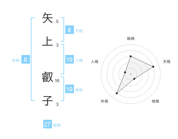 矢上 叡子さんの総格は27画の3点!