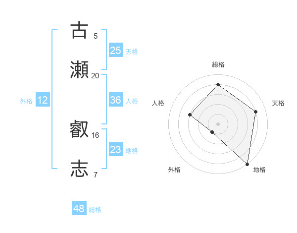 古瀬 叡志さんの総格は48画の4点!
