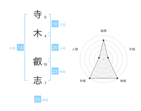 寺木 叡志さんを姓名の画数から五運を鑑定