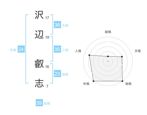沢辺 叡志さんの外格は24画の5点!
