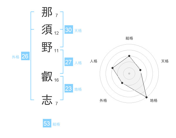 那須野 叡志さんを姓名の画数から五運を鑑定