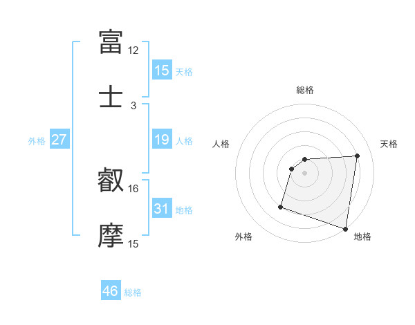 富士 叡摩さんを姓名の画数から五運を鑑定