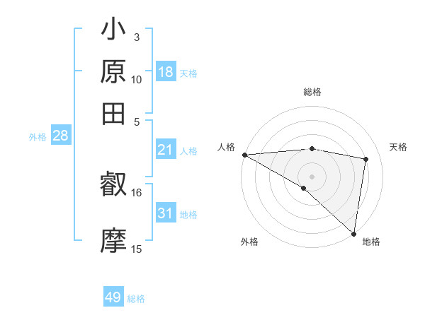小原田 叡摩さんの地格は31画の5点!