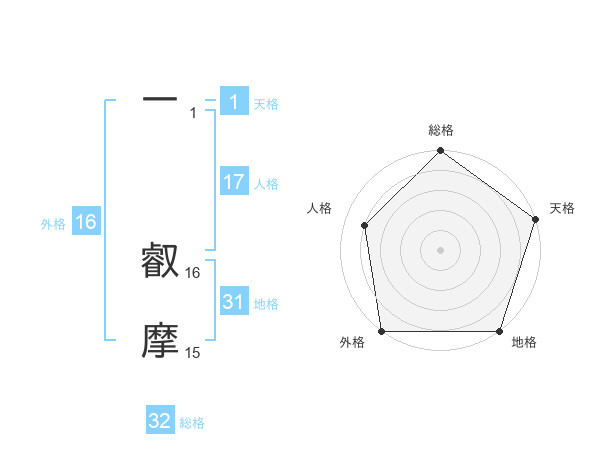 一 叡摩さんの外格は16画の5点!