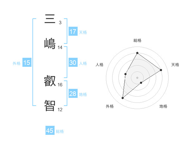 三嶋 叡智さんの天格は17画の4点!