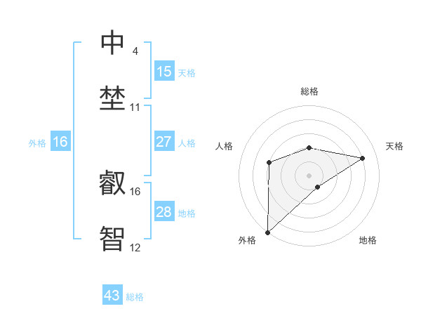 中埜 叡智さんの天格は15画の4点!