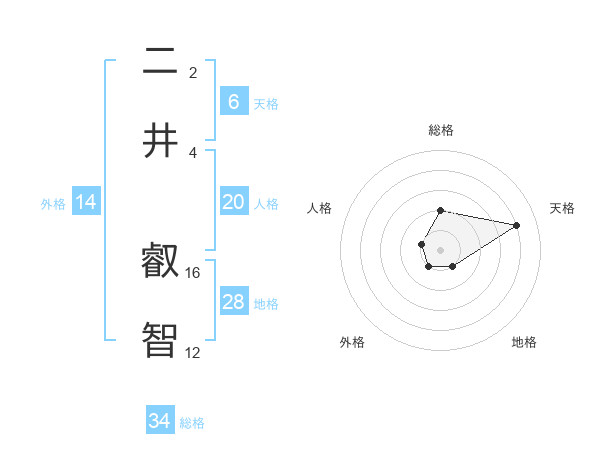 二井 叡智さんの総格は34画の2点!