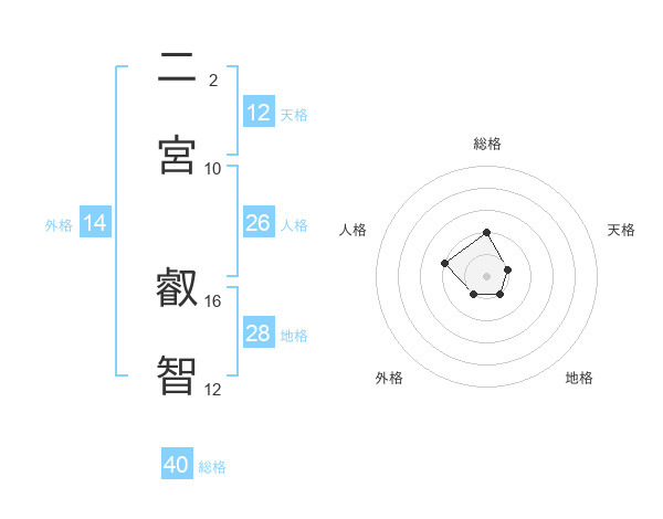 二宮 叡智さんの総格は40画の2点!