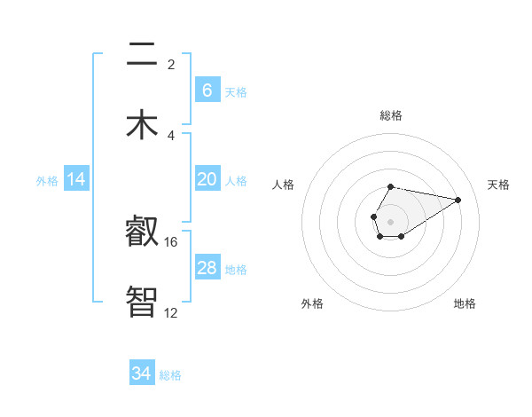 二木 叡智さんの総格は34画の2点!