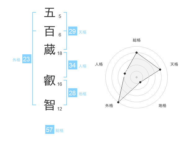 五百蔵 叡智さんの総格は57画の4点!