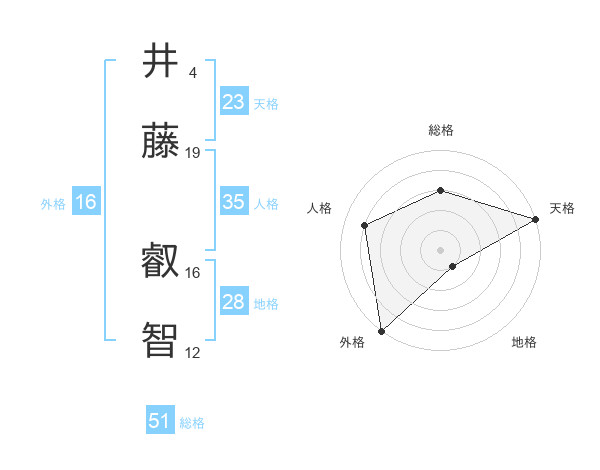 井藤 叡智さんの総格は51画の3点!