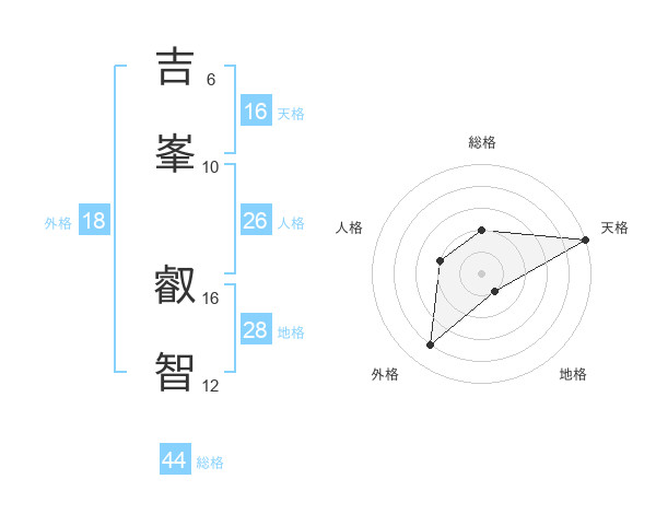 吉峯 叡智さんの天格は16画の5点!