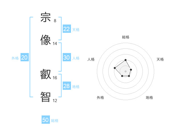 宗像 叡智さんの総格は50画の2点!