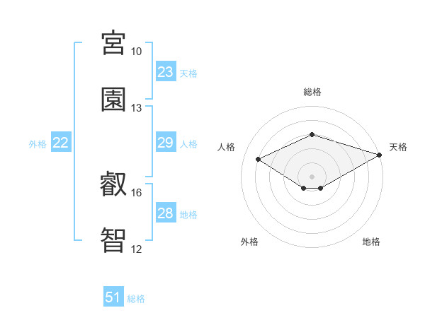 宮園 叡智さんの総格は51画の3点!