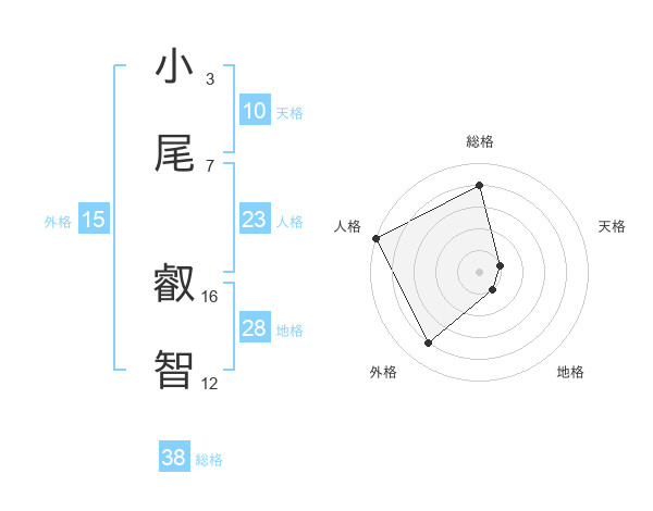 小尾 叡智さんの総格は38画の4点!