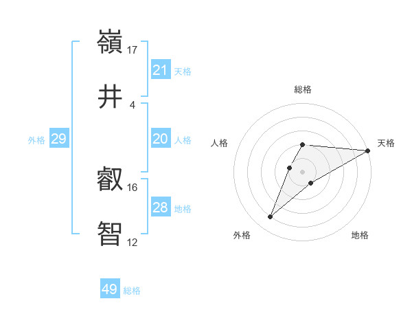 嶺井 叡智さんの天格は21画の5点!