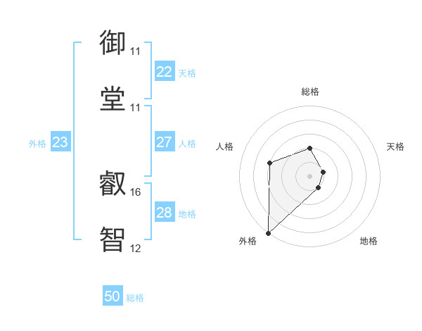 御堂 叡智さんの総格は50画の2点!
