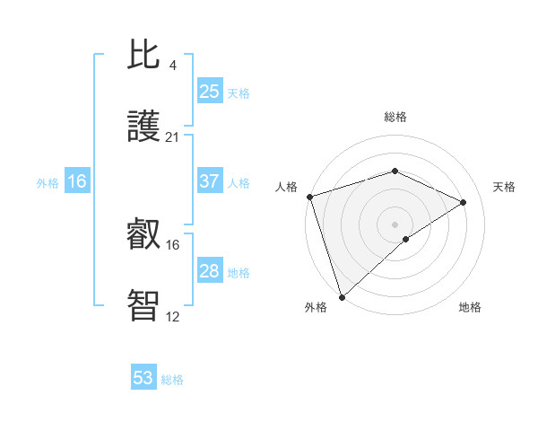 比護 叡智さんの外格は16画の5点!