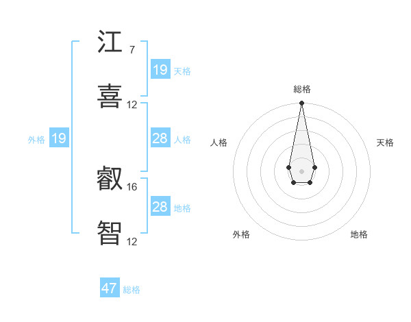 江喜 叡智さんの総格は47画の5点!