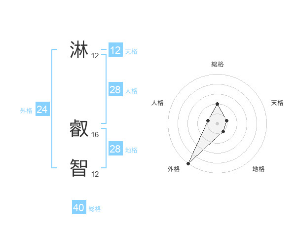 淋 叡智さんの外格は24画の5点!