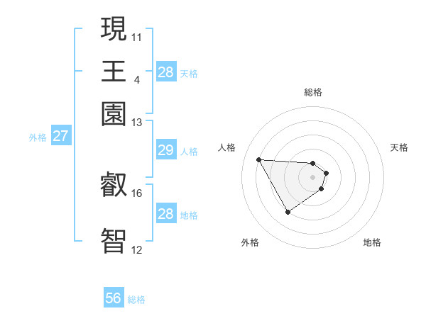 現王園 叡智さんを姓名の画数から五運を鑑定
