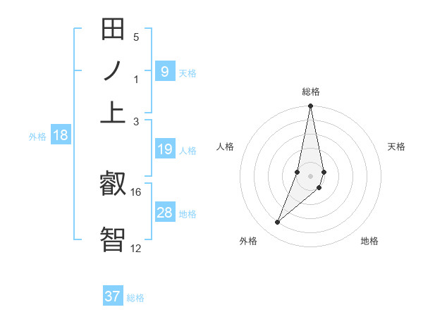 田ノ上 叡智さんを姓名の画数から五運を鑑定