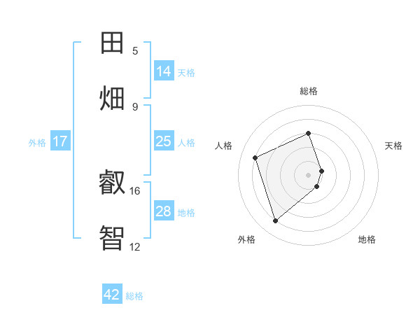 田畑 叡智さんの天格は14画の1点!