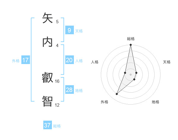 矢内 叡智さんの総格は37画の5点!