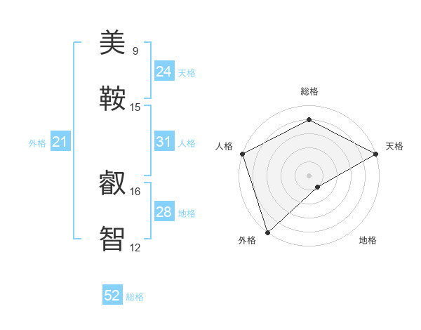美鞍 叡智さんの総格は52画の4点!