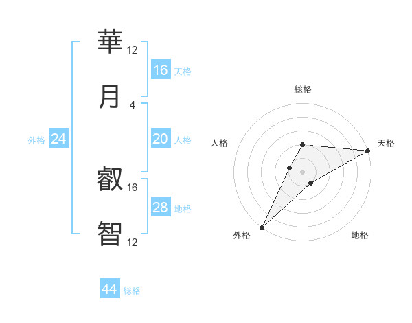 華月 叡智さんの天格は16画の5点!